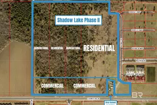 33 acres of beautiful flat land west of HWY 59 and on CR 20. 4 parcels of land sold as one. Break down is 14 acres, 6.5 acres, 6.5 acres, and 6.5 acres. Zone single family residential and agricultural. Borders Shadow Lake Townhomes. Property is a PUD and is located in the Foley Opportunity zone. Buyer to verify all information during due diligence.