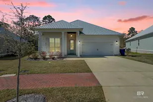 Welcome to this practically brand new, GOLD FORTIFIED coastal 3 bedroom home at The Retreat at Bon Secour, in beautiful Gulf Shores. This stunning home was bought as a new construction design by Truland Homes, the Carmel plan in 2024 by a local professional that since relocated. The home boasts 10' ceilings in all rooms, and 12' ceilings in the living room/kitchen, and post-sale custom upgrades installed throughout including all new lighting fixtures, a custom hood vent, laundry cabinets, stained wooden ceiling beams, and large custom built in bookshelves with electric fireplace. The home also includes beautiful light coastal hard surface flooring throughout, large 24x24 carrera tile floors in the bathrooms, decorative mosaic design tile in the laundry, with white quartz countertops and brushed nickel plumbing fixtures throughout. This beautifully designed gourmet kitchen includes a GAS RANGE stove with custom vent hood, stainless steel GE refrigerator bought new in 2024, a stunning walk-in pantry with free standing microwave, and a powerful stainless Samsung dishwasher. The lighting package is LED with custom installed fixtures to match the beach dream theme. The master suite has 3 large windows that pour in natural light, with an ensuite bath that features double vanity sinks, and a large zero entry tiled shower with sitting bench, pull-down spray head, and glass wall. Closet is massive with chandelier and built-in shelving. The home also includes a whole home TANKLESS WATER HEATER, and like-new white Samsung front-load washer and dryer. This beautiful coastal gem is situated on a nice flat lot, and includes irrigation system, a front porch, and an extended rear back porch with a fresh coat of stain. It overlooks a small body of water with a fountain and is the perfect way to start any morning or end any day. Seller is motivated and ready to work with anyone wanting to live near the beautiful white sands of the Gulf Shores beaches! Buyer to verify all information