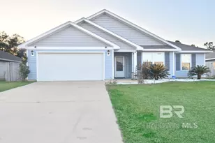 Gulf Shores City Schools! This charming 4 bedroom 2 bathroom house is located walking distance to the brand new Gulf Shores High. This ranch home boasts an open floorplan with the large kitchen overlooking your spacious living room. Kitchen features ample cabinet space, stainless appliances, pantry, huge island and a dining area. Split bedroom plan situates 3 oversized bedrooms and bathroom with the primary bedroom being it's own private retreat. Primary features a soaking tub, dual vanities and oversized walk-in shower. Sit on your covered patio and enjoy your private fenced backyard. GOLD fortified roof. Greenspace behind the property ensures no close neighbors. Quick drive to the beautiful beaches, OWA and The Wharf. Buyer to verify all information during due diligence.