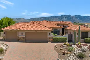 Stunning 3BD/3BA home with private casita situated on a large lot in SaddleBrooke featuring fabulous mountain views! This beautifully maintained property offers a desirable open layout with 42'' kitchen cabinetry, granite countertops, and a cozy gas fireplace perfect for cool desert evenings. Enjoy seamless indoor-outdoor living with auto patio screens, rolling screens on the front door and casita, and a spacious outdoor setting ideal for relaxing or entertaining. Car enthusiasts and hobbyists will appreciate the extended 3-car garage with epoxy floor coating and paver driveway. Additional upgrades include an owned water softener, new water heater (2018), and new irrigation system (2025). A rare opportunity to enjoy privacy, views, and comfort in SaddleBrooke. Additional storage available in garage attics. Security system includes security cameras. Pull-out screens on front door and casita door. Additional items to convey: 3 TV's-one in the great room, one in the master bedroom, and in the third garage space.