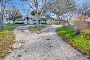 Set on 10.42± acres in Lavaca County, this rural property offers road frontage on two sides, rolling terrain, scattered trees, and a pond with no floodplain per appraisal. The single-story brick home features approx. 3,346 sq ft, 3 bedrooms, 3 bathrooms, plus an efficiency apartment connected by an enclosed breezeway. The home offers an open living area with exposed beams, brick fireplace, and covered front and back porches. Improvements include a 3-car attached garage, solar system, private well and septic, and multiple outbuildings including a barn with cattle pens and hay storage, pole barn, shop with concrete floor, and additional storage structures.