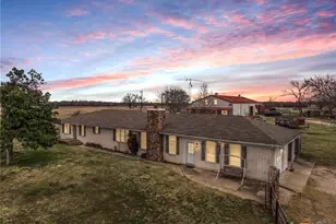 ONE-OF-A-KIND PROPERTY offering a guest barndominium with rental potential on 10+ acres outside city limits! This unique property features a 3-bedroom, 2-bath main home plus a 2-bedroom, 1-bath barndo, complete with barn stalls, corral, stock pond, and chicken coop-perfect for a true country lifestyle. Horses welcome! As you arrive, you're greeted by the main home situated to the left and the barndominium set farther back on the property, offering privacy and separation between living spaces. The main home showcases a beautiful original brick, wood-burning fireplace, along with woodwork and thoughtful upgrades throughout. Interior features include crown molding, fresh paint, matching flooring throughout the main areas, carpet in all bedrooms, and two separate living spaces. The kitchen is equipped with stainless steel appliances, a brand-new built-in microwave and oven, and a wine refrigerator. The barndominium offers exceptional versatility-ideal for equipment storage, a workshop, or additional parking-while also featuring a fully equipped 2-bedroom, 1-bath guest apartment. The apartment includes a full kitchen with a stainless steel refrigerator, stand-alone stove, built-in microwave, dishwasher, and a mobile center island overlooking the living and dining areas, complemented by recessed lighting. The bathroom features a full-size walk-in shower, double vanity, and soaking tub. Step outside and bring your homestead dreams to life, with a stock pond, corral and stalls for horses, chicken coop, and ample space for goats or other livestock. Schedule your private showing today to experience this truly special property.