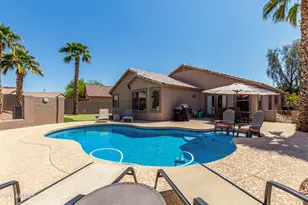 WOW! Come See this Beautiful 4-bedroom 2-bathroom 1 story home with Spectacular Backyard including Heated POOL! The Pool was completely resurfaced in 2023 with an upgraded Pebble Sheen Finish! Relax on the Baja pool step with your feet in the water as you read your favorite book or lounge in the pool side lounge area with plenty of room for lounge chairs. Enjoy time with your family and friends on the outdoor patio area to BBQ your favorite meal! Then up the competition with by seeing who can win the 10-hole putting green challenge! This low care but highly upgraded backyard is so hard to find in this price range! It is truly a backyard oasis! Step inside the home to soaring vaulted ceilings and including a large living and dining area for those holiday get togethers, plus a large great room for all to enjoy together. You'll appreciate the real wood flooring, not cheap laminate, plus tile in the kitchen area. The kitchen is spacious has ample cabinetry, a pantry, recessed lighting, and features granite countertops, undermount sink, upgraded built in appliances and room for an everyday table. The windows are accented by high-end wood shutters in the great room, plus the home has warm designer paint colors throughout to make it feel warm and welcoming. The Primary Suite has a bay window to enjoy the views of the backyard or have room for a siting area, plus the bath features dual sinks, separate soaking tub and walk-in shower, plus a large walk-in closet. 3 additional bedrooms share a 2nd full bath right off the hallway for a truly family friendly home. Designed for ultimate relaxation & entertainment experience, this home with backyard oasis is sure to impress! Year-round entertainment, a family home, or a perfect Airbnb investment, this home has it all! Additional info can be provided for Airbnb gross rents, as it has been a fantastic get away for the seller, will being a nice investment as well. Come See this stunning property!