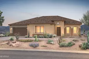 Up to 3% of base price or total purchase price, whichever is less, is available through preferred lender. This stunning home offers 12' ceilings, 2 bedrooms, 2.5 baths, and a spacious den-perfect for a hobby room or library. The secondary bedroom features its own ensuite bath, while the owner's suite boasts a sitting area, an oversized walk-in closet, and a luxurious low-threshold glass walk-in shower. Designed for seamless indoor-outdoor living, a center sliding glass door leads to the covered patio, perfect for relaxing and entertaining. The luxury kitchen is equipped with premium upgrades, and an entertainer's wet bar adds a stylish touch. A 3-car garage with a paver driveway provides ample space, completing this exceptional home with desert views right behind the homesite.