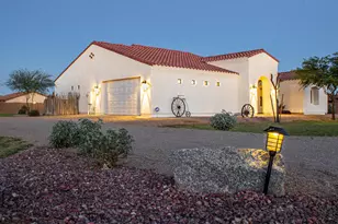 Stunning Mission style hacienda surrounded by mature trees in a semiprivate gated community. Sunsets, Mountain View's, and your own private green oasis awaits due to irrigation, mature fruit/shade trees on this manicured acre. Excellence surrounds this Casa Blanca with columns, corbels, beams and arches from both the huge covered back porch to the front courtyard. Convenient three car garage opens to the backyard with block fence, RV gate and easy-care yard maintenance: no drip irrigation, no HOA. The quaint neighborhood is surrounded by acre size irrigated custom homes. Easy access to old town Buckeye, banks, stores and all the conveniences plus plenty of wide-open spaces! From the lovely elevation, a large, paved driveway leads to the courtyard and an 11ft entry way. From the entry, a cozy den and a great room greet with massive 6x12 wood beams and corbels under 12 'great room ceiling. Separately, the kitchen is perfectly framed with cherry wood dovetailed cabinetry. All the luxuries include easy access from garage to drop zone/pantry, right into beautiful kitchen/dining area. The Kitchen Aid appliances always impress with roll out drawers in cabinets, plenty of space on granite countertops. Don't forget the well-placed lighting: under cabinets, canned, chandelier and natural to choose from. Dining is spacious enough for large family. Master bath and hall baths both have custom tile work and cherrywood cabinetry. The master has a Jetta tub, glass door shower and dual sinks. The hall bath has custom marble work, tub/shower and dual sinks. Marble counter for Linen area, also with cherry wood cabinets. Extra-large bedrooms and walk-in closets, plenty of shelving/storage areas makes everyone feel at home. Knowing the desert heat, the owners created a tight home with low cooling/heating costs. It is due to picking reflective white outside paint, 2x6 construction, installing R-30 blown in cellulose insulation, tinted dual pain window, wood blinds, sunscreens and more. A septic tank built with all latest regulation has no sewer charges ever, the city water is appreciated over an unpredictable well and APS supplies all the electric. Whole house water filter system. Modern massive niche for entertainment area, monster speakers outdoors and in living room area, flood lights in back. China cabinet/hutch in kitchen, hall coat closet, two Trane brand ac/heat units and coatings on driveway are just some of the details.