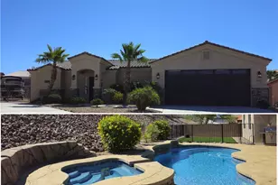 Fabulous Pool Home in Sunridge Estates Lightly Lived In and Like New! Wake up to the beauty of the Colorado River in this stunning 2018-built home, used only as a light vacation retreat it still looks and feels brand new! Nestled at the end of a quiet cul-de-sac in the desirable Sunridge Estates, this property sits on over a quarter-acre of professionally landscaped beauty. Step inside and be greeted by large windows, vaulted ceilings, and a light, bright, and cheerful atmosphere. The open floor plan is ideal for entertaining, featuring a spacious living area and a gourmet kitchen complete with a center island, upgraded cabinetry, granite countertops, a large pantry, and sleek stainless steel appliances. The primary suite offers luxury and privacy with a walk-in tiled shower, his-and-hers walk-in closets, and dual sinks plus direct access to the covered patio, pool, and heated spa. The split floor plan offers added seclusion with two oversized guest bedrooms, perfect for visitors or family. Additional highlights include: Oversized boat-deep garage with 9 insulated doors Ample side parking for RVs, boats, and all your toys Plank tile flooring, canned lighting, 8' doors, oversized baseboards Large inside laundry/utility room No HOA or assessments Relax in the private backyard oasis with a sparkling pool and spa truly the perfect place to unwind after a day on the water. Located just minutes from the Colorado River, Lake Mohave, shopping, and dining, this home offers both luxury and convenience. Furnishings available outside of escrow. Come take a look you won t be disappointed!