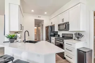 This beautifully remodeled, fully furnished 2 bedroom/2 bath upstairs condo offers the perfect blend of comfort and convenience?ideally located poolside within a gated community! Thoughtfully designed with modern furnishings and stylish finishes throughout, this turnkey home is ready for immediate enjoyment, whether you're relocating, seeking a seasonal retreat, or looking for a fully equipped home. The modern kitchen is well-equipped with a newer gas stove, dishwasher, refrigerator, microwave, and comes fully stocked with dishware, cookware, utensils, coffee maker, toaster, and more. Enjoy relaxing in the open great room with a comfortable sofa and TV. A built-in desk nook perfect for work or study. The spacious primary suite features a king-size bed, walk-in closet, and balcony... overlooking the poolan ideal spot to relax and unwind. The guest bedroom offers a queen bed and a walk-in closet. Step outside to your private balcony and enjoy peaceful pool views, or take advantage of the community's exceptional amenities, including a heated pool, gas BBQ areas, fitness center, and office/conference spaces. Located within walking distance to a local shopping center and just minutes from golf courses, top-rated restaurants, shops, and scenic hiking trails. This home truly offers the best of location and lifestyle!