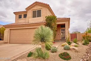 Wow... Step into this turn key 3 bed 2.5 bath Tatum Ranch home offering the best of indoor/outdoor living. Vaulted ceilings with two common living spaces separated by a wood burning two way fireplace; you'll have plenty of room with lots of design options. The stonework found throughout accents the home like no other. Upstairs, the primary bedroom is expansive with deck overlooking backyard oasis. The large primary bathroom leads into an oversized walk-in closet. The other two bedrooms are at the opposite end of the hall, with the second full bath smartly placed at their entrance. The large backyard offers, a covered patio, putting green, travertine tile, heated pool with baja step, above ground spa, fire pit, two water features and has been meticulously landscaped. A must see.