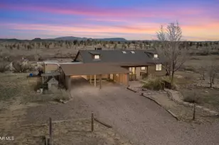 Set against the wide-open skies and rolling countryside of Chino Valley, this beautifully maintained 2019 home sits on a partially fenced 1.5-acre homesite, offering privacy, elbow room, and sweeping mountain views yet remains just minutes from shopping, schools, and convenient access to Highway 89 for an easy commute. The approach is warm and welcoming, with a charming flagstone walkway leading to a covered front deck framed by dormer windows and a lush real grass front yard, creating inviting curb appeal from the moment you arrive.Inside, a welcoming foyer opens to a bright, open-concept great room where vaulted ceilings and abundant natural light create an airy, comfortable atmosphere. Large picture windows capture the surrounding views, while a wood-burning fireplace with a tile surround and wood hearth serves as a cozy focal point for relaxing evenings or gathering with friends and family. The dining area features an inset ceiling with both indirect and direct lighting, adding architectural interest and ambiance as it flows seamlessly into the kitchen. Designed for both everyday living and entertaining, the kitchen showcases granite countertops, a decorative backsplash, stainless steel appliances including a smooth-top electric range, and a spacious pantry delivering both style and functionality for the home chef.The thoughtfully designed split floor plan enhances privacy. The generous primary suite offers a peaceful retreat with a large closet and an updated ensuite bath complete with dual sinks, granite countertops, and classic wainscoting detail. The additional bedrooms are comfortably sized for family or guests, and a versatile loft provides flexible space perfect for a home office, playroom, media room, or creative studio.Outdoors, the expansive property invites endless possibilities. There is a shed and ample space for RV parking, animals, gardening, or even future outbuildings all with the freedom of no HOA. A large back deck overlooks mature trees and panoramic views, providing an ideal setting to unwind and enjoy the quiet beauty of the surrounding landscape.Recent improvements, including a new roof in 2023, updated HVAC system, and new flooring, add peace of mind and immediate value. Whether you are searching for a full-time residence, a seasonal getaway, or an investment opportunity, this property offers space, comfort, and versatility in one exceptional countryside setting.