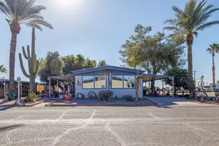 An entertainers delight! This spacious and lovingly taken care of 2 bedroom home has brand new HVAC, a large living area, ample counter space in the kitchen, laminate floors, energy efficient windows, water filter system, bright primary bedroom with a built in vanity and a bathroom that was recently redone with a raised vanity and new storage closets. Outside you'll find mature landscaping and plenty of space to entertain with an extended patio as well as 2 more patios that go all along the outside of the home. Sunrises and sunsets can be enjoyed outside all year long and the home is just a stone's throw from all the amenities of the park.