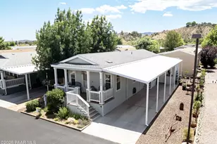 Looking for a Great community? This 828 sf, 2 Bedroom, 2 Bathroom Cavco home in the 55+ community of Orchard Ranch located in the beautiful Prescott area in the shadow of the Bradshaw and Mingus Mountain ranges is ready for You! This home has a nice open kitchen/living/dining room concept to maximize your space. The primary bedroom has a good-sized closet & a large walk-in shower. Privacy screens on the windows make it easy to open the house to let in the cool evening air while still having privacy. Stackable washer & dryer convey, new in 2024. Enjoy the front porch in the morning with your coffee & in the evening in the shade. Nice workshop/storage at the end of the 2 car carport makes for easy storage or a Great workspace. AC/Heat Pump was installed & roof was replaced in 2024! Community Amenities include 2 Pools, 2 Spas, Billiard's room, library, 5 pickleball courts, Bocce Ball court, Corn Hole court, along with lots of monthly activities.