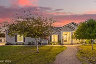 Rare country living in the heart of town! This stunning custom property sits on over an acre of beautiful grass and trees but is still just minutes from Downtown Gilbert. You will immediately feel the luxury in every inch of this home through the smart split floor plan design, high ceilings, hardwood floors, custom built-ins, and stylish lighting found throughout. The great room's oversized sliding doors fully open to create an indoor/outdoor experience with the covered patio. The kitchen boasts Thermador appliances, a huge granite island, and elegant cabinets that go to the ceiling. You will love the primary suite with its gorgeous, spa-like bathroom. The cherry on top is the massive yard that includes a sprawling paver patio, bar area, gardening space, fruit trees, and expansive lawn!