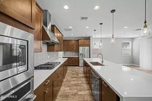 This spacious, modern 4-bedroom, 2.5-bath home was formerly a Shea model home and comes with over $180,000 in upgrades. It showcases a large great room and an upgraded kitchen featuring high-end stainless-steel appliances, quartz countertops, designer flooring, and premium cabinetry. The property also includes a landscaped backyard and full-size washer and dryer. Located just half a mile from the San Tan/Loop 202 Freeway, it offers easy access to shopping, dining, and entertainment. Nearby amenities include a community pool, covered play areas, picnic spaces, and BBQ facilities.