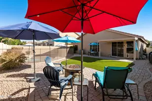 Seller concession up to $5000 in buyer credit for the right offer to be used as lender allows, closing costs, rate buy down etc. 3 bdrm with flex room, 2 bath home with private fenced pool. This is an opportunity to take possession of this move in ready featuring a flex room that can be an office, den, playroom, or a 4th bedroom. Two living spaces, one at front of home providing a serene living room with vaulted ceilings, half-moon clerestory windows & durable laminate flooring. The second living area (family room) opens off the kitchen & features a cozy gas fireplace & doggy door. Kitchen features warm wood cabinetry, recessed lighting, Corian solid surface countertops, under mount sink & newer SS appliances. The primary bedroom features an ensuite with double sinks separate shower plus plantation shutters & fabulous view of the pool area. Relax outdoors on the inviting covered patio, where you can enjoy entertaining. The rear yard is low maintenance with artificial grass that is pet resistant, fenced play pool, as well as pavers along both sides of home. A second patio features a gas fire pit & plenty of space to lounge in the sun, read a good book or enjoy a cup of morning coffee. BONUS the Storage Shed with pool supplies convey. The 2-car garage includes built-in cabinets for extra storage. American Standard Allegiance 16 Seer HVAC in 2011. 50-gallon Bradford water heater installed in 2024. Pool bottom refinished with micro fusion micro pebble tec finish in 2016 .