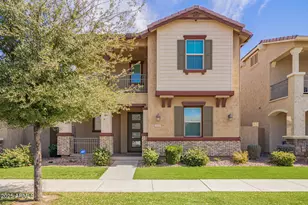 Check out this beautiful turn-key home in the Cooley Station community! This modern house features a split floor plan design with a large, open living space on the first floor. The kitchen includes GE stainless steel appliances, a large pantry, and plenty of storage space!The primary suite boasts a huge walk-in closet, a floating dual-sink vanity with under-cabinet lighting, a large walk-in shower with multiple showerheads, and balcony access. Across the upstairs loft are the additional spacious guest bedrooms and the laundry room. The two-car garage offers TONS of extra storage space with attached overhead storage, bike racks, and a separate storage area. The courtyard is perfect for lounging, featuring a pergola, an outdoor TV, and easy-to-maintain turf and desert landscaping. Additional smart features include a hardwired ADT system, a Nest doorbell, color-changing bistro lights, and Honeywell programmable thermostats. Community amenities include playgrounds, a community pool, a tennis court, a basketball court, and biking/walking paths.