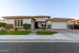 Welcome to indoor/outdoor living at its finest! Showcasing an expansive cornerless sliding door that connects the patio to the gathering room, kitchen and dining nook, this home is a dream for entertaining. In the oversized backyard oasis, you will find a refreshing pool with baja shelf, gas heater and attached spa, travertine patio with built-in gas barbeque and bar, and artificial turf ideal for parties and outdoor recreation. Indoors, this home features a custom entertainment wall with built-in fireplace, an oversized quartz island in a modern white kitchen, double ovens and an upgraded pantry to house your coffee bar or small appliance garage. The primary suite is a retreat with a soaking tub and large steam shower and a well-appointed closet that offers access to the laundry room. Two of the bedrooms include en-suite bathrooms and the third bedroom also has a bathroom next to it with every bedroom in the house boasting a walk-in closet with customized built-in storage. The split third car garage is air-conditioned and designed for versatility, offering the perfect space for a home gym, flex room, or workspace, with direct entry to the home. Upon garage entry, utilize a dedicated mudroom to keep all the clutter contained. Every aspect of this home has been thoughtfully designed to embrace luxury living. This home is located on a cul-de-sac in a single-story, gated community. Combined with its proximity to the Gilbert Regional Park, schools, shopping, healthcare and freeway access this home is a must see.