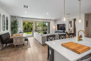Situated on a rare oversized lot in sought-after Layton Lakes, this beautifully updated home is loaded with over $150,000 in high-quality upgrades. Step inside to 9-foot ceilings, wide plank wood-look tile flooring, and a bright open layout designed for modern living. The heart of the home is a fully upgraded kitchen featuring 42-inch white shaker cabinetry, Silestone countertops, stainless steel appliances, a gas cooktop with vent hood, a built-in oven with stacked microwave above, custom herringbone backsplash, oversized island, and upgraded fixtures and lighting. Through the spacious living area, a stunning 15-foot sliding glass door creates seamless indoor-outdoor living and opens to your private backyard retreat. The professionally landscaped yard showcases a resort-style pool with baja shelf and water feature, extended travertine patio, low-maintenance turf, and a custom putting green, all set on an oversized lot with plenty of space to entertain. The primary suite offers a peaceful retreat with an extended dual-sink vanity, upgraded finishes, a beautifully tiled walk-in shower, and generous closet space. The additional bedrooms are thoughtfully positioned throughout the home, including a versatile 4th bedroom that functions beautifully as a flex space. Additional highlights include plantation shutters, upgraded lighting throughout, modern hardware, and a well-designed laundry room with added storage. Located in highly desirable Layton Lakes in Gilbert, residents enjoy scenic lakes, parks, playgrounds, splash pads, sports courts, and walking paths within one of the area's most loved master-planned communities.