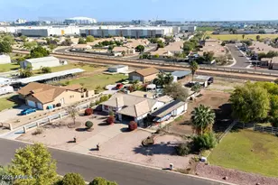 Welcome to your private oasis-an exceptional 0.87-acre ranch-style retreat with NO HOA, a sparkling resort-style pool, and full horse privileges in one of Glendale's most sought-after neighborhoods. This one-of-a-kind estate boasts 3 spacious bedrooms and 2 baths spread across 2,062 square feet, offering an expansive, open layout anchored by vaulted ceilings, tile and stone flooring, and elegant granite countertops, desktops and windowsills that enrich the heart of the home. Step outside to discover your ultimate entertaining playground: fully fenced-in yard bordered with palm trees, bougainvillea and yellow trumpetbush, a large, sparkling Pebble Tec pool complete with Baja entrance, swim up table and numerous umbrella holders, built-in stainless steel BBQ surrounded by outdoor bar complete with granite countertops, and a cozy outdoor fireplace. Climate controlled Arizona room patios equipped with a minisplit (2019) and ceiling fans is ideal for relaxing in comfort while watching the sunrise or enjoying the backyard. This property isn't just a home, it's an equestrian lover's dream, complete with covered mare motel boasting 4 horse stalls each measuring 20' x 16', all with automatic watering and misting systems, a wash stall, and a fully fenced in sand arena. For your toys, there's RV parking (13'×46'), a second 16'×24' shed with electricity, cabinetry and LED lighting, and a 20'×20' carport/workshop with 10' inside truss height, concrete floors and overhead LED lighting. Additional 10' x 20' storage/workshop/she-shed with 220/110 VAC service with interior lighting, outlets and solar fans for a dry, protected work and hobby area. This lot has the opportunity to build a larger shed on it as well. Inside, the craftsmanship is clear everywhere: custom cabinets, a murphy bed with built-in granite-topped desk, a master bathroom with dual sinks boasting 16' of granite countertop and make-up area, a marble walk-in shower and adjacent hot tub, living room with wired surround sound. Recent updates include two new A/C units (2021& 2022), new water heater (2023), new dishwasher (2024), new stove (2025), plus a new tile roof and fresh paint inside and out (2023). Energy-conscious buyers will appreciate the solar panels powering this serene haven, while the yard's auto-timed irrigation system and available flooded irrigation keeps the landscape lush without all the sweat. All of this sits in a prime Glendale location, just minutes from the Westgate Entertainment District, State Farm Stadium, Topgolf, dining, shopping, and year-round eventsgiving you the perfect blend of privacy, convenience, and community. Don't miss the chance to own this truly exceptional property, it's not just a home, it's a lifestyle.