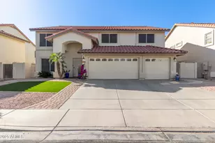 The search is finally over! Discover this delightful 5-bedroom (possible 6 bedroom) residence featuring a 3-car garage, stylish pavers, and pristine artificial turf. You'll love the serene open layout w/ a neutral palette, blinds, and attractive wood-look tile flooring. The gourmet kitchen comes w/ quartz counters, recessed lighting, abundant white shaker cabinets with crown moulding, mosaic tile backsplash, pantry, SS appliances, and an island w/ breakfast bar. This home features two luxurious primary suites, one resides on the ground floor, while the other is located upstairs, each boasting plush carpeting, a well-appointed ensuite with double vanities, and a walk-in closet. The sizeable loft offers a mini-kitchen and additional living space. A generous loft awaits, complete with a handy mini-kitchen and ample space for relaxation or recreation. The enchanting backyard showcases a covered patio, a charming gazebo, and a refreshing pool. There is an additional room downstairs w/ a door and windows but no closet that can easily be used as a 6th bedroom. Sellers have spent about 150k in this home and it is immaculate. Features: new roof in 2021 among many other upgrades including: Garage cabinets: 2021 Garage storage rack: 2024 New water softener: 2024 Kitchen install upstairs: 2022 Kitchen remodel downstairs: 2024 New Stove w/ air fryer: 2024 New reverse osmosis: 2023 Contractors grade tile: 2022 New roof w/ 20 year warranty: 2021 Can lighting: 2023 Both master bedroom bathroom remodel: 2024 Powder room remodel: 2023 Front and backyard renovations: 2021 Pavers backyard: 2021 Pavers backyard: 2021 Gazebo: 2024 New pool sweep and pump rebuilt: 2024 New solar screens 2022 New thermostat: 2023 New doorbell: 2023
