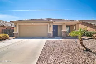 Gorgeous and Move In Ready, single story in Goodyear! this home features a split floor plan & vaulted ceilings w/3 beds & 2 baths & 2 car garage. Open kitchen comes with all black appliances, breakfast bar & island overlooking the living room. Primary Suite has charming bay windows, in suite bath w/dual vanity, separate tub/shower & spacious walk in closet. Low maintenance landscape with upgraded turf and paver backyard.