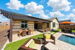 Modern sophistication meets effortless desert living in this stunning 3-bedroom + Den home with undeniable curb appeal with lush yet low-maintenance landscaping. Inside clean architectural lines, recessed lighting, tray ceilings, and expansive tile flooring create a refined open-concept design that feels both airy and intentional. The crisp white kitchen is a true showpiece featuring shaker cabinetry, granite countertops, subway backsplash, S/S appliances, an oversized island with breakfast bar & walk-in pantry. A very desirable split floor plan enhance both comfort & functionality. The spacious owner's retreat offers a large walk-in closet and spa-inspired ensuite with dual vanities, soaking tub, and oversized glass shower with built-in bench. Secondary bedrooms are generously sized with plush carpet and ceiling fans, while the private bonus room offers flexibility as a 4th bedroom, media room, den, or executive office. Step outside to your entertainer's dream backyard extended travertine patio, with additional ramadas and a resort-style pool with water feature, all thoughtfully designed with low-care landscaping that lets you focus on relaxing, not maintaining. Located in the award-winning community of Estrella Mountain Ranch, residents enjoy two community centers, fitness facilities, lakes, 50+ miles of hiking and biking trails, pickleball, boating, fishing, heated pools with water slides, and the Nicklaus Design golf course managed by Troon. Residents enjoy access to two resident clubs, including the Starpointe Residents Club, featuring resort-style pools, a state-of-the-art fitness center, lakeside paths, and year-round community events such as live music, fireworks, and seasonal celebrations. Estrella's North and South Lakes serve as the heart of the community, offering scenic walking paths, water views, and gathering spaces that foster connection and relaxation. An active lifestyle is built into daily life with miles of hiking and biking trails, parks, and sports courts for pickleball, tennis, basketball, and sand volleyball. Golf enthusiasts appreciate proximity to the Golf Club of Estrella, while families benefit from well-regarded schools, playgrounds, and community-focused programming. What truly sets Estrella apart is its thoughtful master planning homes are intentionally woven into preserved open space, creating a feeling of privacy and escape while still offering convenient access to shopping, dining, and major Valley freeways. The result is a community that feels like a retreat, yet remains connected to everyday needs. Estrella is more than a neighborhood it's a lifestyle defined by outdoor living, resort-style amenities, and a strong sense of belonging.