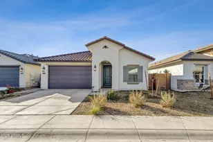 New construction built in 2025, offering the advantages of modern design and efficiency without the added expense or delay of post-build upgrades. This single-story home spans 2,082 sq ft and features 5 bedrooms, 3 bathrooms, and a 2-car garage, all arranged in a functional split floor plan designed for everyday living and long-term flexibility. This home combines new-build simplicity with immediate availability. The home features a spacious great room with vaulted ceilings, creating an open and airy living space that flows seamlessly into the vaulted kitchen and dining area. The kitchen is finished with white shaker-style cabinetry, quartz countertops, subway tile backsplash, and stainless-steel appliances, including a gas range. A large center island with seating anchors the space, while pendant lighting, a pantry, and abundant counter space support both everyday use and entertaining. The adjacent dining area flows naturally into the living space, reinforcing the open-concept design. The backyard offers a clean, low-maintenance outdoor space with a covered patio featuring a ceiling fan for shaded seating and everyday use. Artificial turf creates a finished lawn area bordered by block fencing for privacy, with decorative gravel and young plantings along the perimeter. The layout provides open sightlines and usable space for relaxing, outdoor seating, or casual entertaining, with direct access from the main living area and room to personalize over time. Conveniently located near outdoor recreation, shopping, and freeway access, with Cesar Chavez Park 1.4 miles, Laveen Village Center 2.1 miles, and Loop 202 South Mountain Freeway 3.0 miles, providing easy connectivity throughout the Valley.