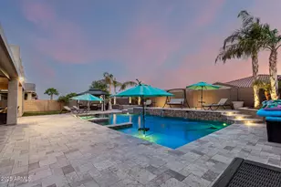 HIGHLY MOTIVATED! Welcome home to this wonderful 2-level residence with a heated saltwater pool w/ premium Sonos outdoor surround sound! Impressive featuring a charming desert landscape & a 4-car garage with epoxy flooring and attached cabinetry. Fall in love with the sizable living areas showcasing soaring ceilings, delightful arched passageways, wood-look flooring, and neutral paint, exuding elegance and comfort. Cook delicious meals in the impeccable kitchen, a chef's delight with recessed lighting, wood cabinetry for ample storage, SS appliances, and an island. The main bedroom offers carpet for extra comfort, a sizable walk-in closet, and a bathroom with double vanities. The den and bonus rooms are perfect for a workout room and a home office, and you'll find a powder room perfect for guests too. Enjoy outdoor living to the fullest in this beautiful property, including a covered patio, a sparkling pool, a greenbelt ideal for a playground, an outdoor kitchen, a gazebo, and so much more! You'll never be bored in this house! Hurry up! You have to see it!