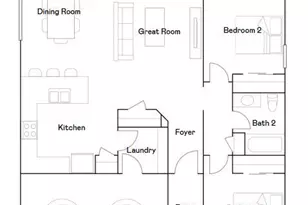 The Great Room, kitchen and dining room share an open floorplan in this single-level home, leading to a covered patio ideal for entertaining or relaxing. Off the foyer are two secondary bedrooms, providing a comfortable and private space for household members or overnight guests. The luxe owner's suite is situated at the back of the home, comprised of a restful bedroom, en-suite bathroom and walk-in closet. Our homes come with the Rinnai Tankless Water Heater, Post-Tension Foundation, Taexx built-in pest control system, Radiant barrier roof decking, 2'' Faux Wood Blinds and more!