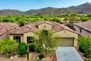 Stunning 5 bedroom home in the sought after Dove Mountain neighborhood of Los Saguaros. This home features a gourmet kitchen with double ovens, granite countertops, upgraded cabinets, pocket office, huge walk in pantry and eat in dining that all open to a sprawling great room. The primary suite has a cozy sitting room, huge walk in closet, luxurious bath with decorative tile shower, and his and hers sinks. Fifth bedroom can be used as a private den/office. Enjoy the beautiful Arizona weather on your covered back patio, Cooking on your built in grill, or relaxing in the hot tub. Minutes from golf, parks, spa, trails, restaurants and the Ritz-Carlton. Enjoy lower energy bills in this energy efficient home built by Maritage. This immaculate home won't last long.