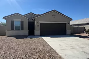 Located in the heart of Maricopa, this immaculate 3 bedroom 2 bathroom home offers 1882 sqft of stylish living space. The open kitchen boasts granite countertops, a spacious island, stainless steel appliances and a walk in pantry. The master suite features a private bath with dual sinks and a generous walk in closet. Enjoy oversized tile flooring, blinds and ceiling gans throughout. The low maintenance backyard includes a covered patio, perfect for outdoor relaxation. Just minutes from tons of dining and shopping. this like-new home is a must see! Pets conditional upon approval. Lessee to verify all information.