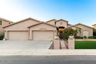Welcome to this beautifully remodeled and updated single-level home located in a highly sought-after neighborhood known for its serene atmosphere and golf course living. Nestled on an oversized lot, this luxurious home offers 5 bedrooms, 2.5 bathrooms, and a rare 4-car garage, including a convenient pull-in bay. This home is set up for a single couple or two couples living with each set having half the house to themselves. The Master and study/bedroom on the left after you enter and 3 full bedrooms and a full bathroom on the right. This winter home is perfect for snowbirds wanting to live in luxury... The home is perfectly positioned on a desirable street that runs parallel to the 18th fairway, just steps away from the course, offering a unique blend of privacy and proximity to recreational luxury. This home has an inviting entryway. Upon entry, the dramatic high ceilings and pillars draw you to the elegant great room, which is perfect for relaxation or entertaining. The interior is fully furnished and move in ready. All new dishes and appliances, TVs, outdoor furniture next to an amazing heated salt pool. Large ceramic tile flooring runs through the main area of the home, with new luxury vinyl plank flooring in the 4 guest bedrooms. The large primary suite and the expansive great room feature new plush carpet. The heart of the home features a spacious open-concept family room, dining and kitchen area, ideal for entertaining or everyday living all furnished and ready from the minute you move in. All bathrooms have been updated with new toilets, custom walk-in showers, showcasing stunning quartz countertops, modern sinks, lighting, hardware, and updated finishes. The grand primary suite, has a door to access the patio, offers a private retreat with a beautifully remodeled en suite including a soaking tub and oversized walk-in closet. Step outside onto your large covered patio & into your personal backyard oasis. The resort-style backyard is landscaped with desert and tropical foliage including palms, and citrus trees creating a lush escape. The highlight of the backyard is the heated saltwater pool, which has been upgraded to gas heating, allowing you to enjoy it comfortably year-round. This home delivers it all! Located just minutes from shopping, restaurants, parks, and not far from South Phoenix. This is more than a home it's a lifestyle opportunity. Don't miss your opportunity to own this updated, spacious, and well-maintained home.