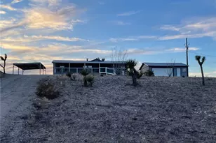 Fantastic views from this 3 bedroom, 2 bath doublewide manufactured home, located on a hilltop with panoramic views of the Great Wash Basin. This property sits on a 1.25 acre corner parcel, offering 2 separate roads for access, and a partially fenced rear yard. Home offers a large kitchen with plenty of cabinets, plus a pantry. There is a formal dining room and a stone covered wood burning fireplace in the living room. Flooring is laminate for easy care and cleaning. Master bedroom has a separate shower and garden tub. Guest rooms are roomy and near the guest bathroom. Utility room has washer and dryer and room for small storage. There is an oversized detached 2 car garage with shelves and room for a workshop area. There is a metal built 2 car carport, with metal roof. Home and garage also have newer metal roofs. The HOA membership offers a variety of uses, including tennis courts, swimming pool, pool table and much more. This property is only minutes to the commercial district of Meadview.