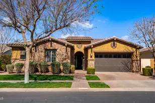 Welcome to this stunning home, where the first impression begins with the beautiful rock exterior leading to an impressive security gate. As you enter, you're greeted by a beautifully paved courtyard featuring a tranquil water feature - the perfect introduction to this remarkable property. Step inside, and you'll immediately feel the warmth and inviting ambiance of the home. The well-designed floor plan includes a separate wing ideal for family or guests, featuring two spacious bedrooms with walk-in closets, an enclosed den, and a full-sized bathroom. There's also a conveniently located half bath near the pool area, so your guests can easily access it. The living room offers breathtaking views of the gorgeous backyard through all the large sliders and the chef-inspired kitchen. This home has been meticulously maintained, and every detail reflects a commitment to quality. The kitchen is a true standout, showcasing beautiful staggered cabinetry, exquisite granite countertops, a five-burner gas cooktop, and a sleek stainless-steel hood. The living room also features elegant plantation shutters, and you'll be pleased to know that there is no carpet anywhere in the home, adding to its appeal. The luxurious primary suite is a private retreat, complete with tray ceilings and a spa-like en-suite bathroom. The primary shower is nothing short of impressive, with a snail-style super shower and double vanities for added convenience. Step outside into your own personal oasis - the backyard is truly spectacular. The Pebble Tech pool, complete with a hot tub that overflows into it, is a focal point of the space. The large grass area provides ample room for play or relaxation, while the cozy fire pit is perfect for cooler evenings. This oversized lot offers endless possibilities for customization and expansion. Located in the highly sought-after Eastmark community, this home is part of a vibrant, active neighborhood. With access to a community pool, splash pad, basketball courts, baseball fields, and some of the best schools in the state, it truly offers something for everyone. Engage with a variety of clubs and activities, including a running club, wine club, book club, and don't miss the popular Friday night concerts in the park. This is more than just a home - it's a lifestyle. Don't miss out on the opportunity to own in this exceptional community.