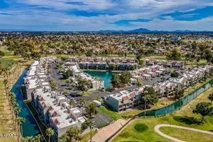 Best Value in the area for Investment, Snow Birds or Primary Home. Water & golf course views from your roomy condo in gated Lake Park at Dobson Ranch. This tri-level unit gives you serious square footage and flexibility 3 bedrooms (including the primary suite) and two baths upstairs, plus a lower-level suite with its own bathroom and patio access that works as guest quarters, office, or studio space. The bones are solid plus newer HVAC, water heater, and front door. Easy 101 access puts you in Scottsdale or downtown Phoenix in 20 minutes. Priced so you can put your stamp on it. Detached single car garage with storage is included. It needs some love but can be a showplace with the right cosmetic work. Perfect for lock and leave lifestyle. Community pool is a short walk nearby.