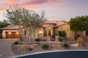 Tucked away at the quiet terminus of a serene cul-de-sac, this exquisite estate serves as a private sanctuary, greeting you with the refined elegance of a custom paver driveway, classic stucco finish, and an atmosphere of total seclusion. The residence is masterfully designed for both intimacy and grand-scale entertaining, boasting a sophisticated split floor plan where each of the four spacious bedrooms enjoys the luxury of its own private en-suite bath. Inside, the home breathes with soaring ceilings and timeless architectural details, from the rich textures of eight-foot solid wood doors to the artistic precision of elegant, coffered ceilings in the formal dining room. Whether you are retreating to the dedicated executive office or indulging in the primary suitea resort-caliber sanctuary featuring engineered wood floors, a private sitting area, and a spa-inspired bath with dual walk-in closetsevery inch of the home exudes curated comfort. At its heart lies a gourmet chef's kitchen, anchored by a monolithic granite island and custom cabinetry, equipped with professional-grade tools including a six-burner gas cooktop, double ovens, and a walk-in pantry. This social hub, complete with a dedicated bar area and a charming beamed breakfast nook, flows effortlessly into a lush outdoor oasis via patio doors protected by heavy-duty screens. An integrated surround sound system carries the ambiance from the interior to the covered, color-stamped patio, where a heated pool with a waterfall feature and a relaxing hot tub set the stage for alfresco evenings. Guests can gather around the gas firepit or the fully equipped outdoor kitchenfeaturing a built-in grill, sink, and fridgewhile enjoying the mature landscaping and fresh citrus from your own lemon trees. Enhanced by modern luxuries like whole-home water filtration, hot water on demand, and a three-car finished garage with custom built-ins, this property offers a rare opportunity to inhabit a lifestyle of quiet opulence and effortless Arizona charm.