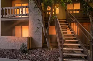 This well-designed 1-bedroom unit feels both cozy and spacious. A large breakfast nook opens to a private second-floor balcony with peaceful landscaping views. The kitchen features newer laminate flooring, with carpet throughout the rest of the home. A hallway and walk-in laundry room create separation between the living room and bedroom. Stylish Key West shutters help keep out the Arizona sun. A/C replaced in 2021. Community amenities include a heated pool and spa, dog park, picnic area, covered ramada, and ample parking. Light rail is just 8.5 blocks away, with restaurants, gyms, and everyday conveniences nearby. Easy access to the 60, 101, and 202, plus Mesa Community College (10 min) and ASU Tempe (15 min).