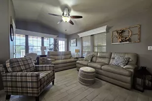 Discover a unique home with a guest casita! This meticulously maintained property features elegant ceramic tile floors, new bathroom vanities, quartz countertops, and $10,000 worth of brand-new appliances. Enjoy modern updates like new lighting, hardware, sinks, a 4-stage filter & RO water system, and a 40-gallon hot water system. The new carport with fresh epoxy paint and an 8-year warranty adds convenience, along with an 8x4 shed and under-deck storage. The roof is under six years old, and the home boasts white wood window shades, fresh interior paint, and new lighting throughout. The guest casita has a new AC split for visitor comfort. Located in Viewpoint Golf Resort, this property offers a vacation-like lifestyle in a vibrant 55+ community. Enjoy two golf courses, four pools, spas