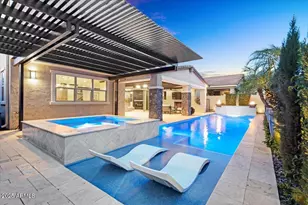 Welcome to this extraordinary former model home in Mesa's premier gated master-planned community of Eastmark. Situated on a private corner lot bordering lush common area, this residence is an entertainer's dream with seamless indoor-outdoor flow and magazine-worthy upgrades throughout. Walls of glass open to an expansive covered patio complete with fireplace, mounted TV, and tranquil courtyard water feature. The resort-style backyard stuns with a custom heated diving pool, fire accents, water features, spa, and beautifully designed spaces for both relaxation and gatherings. Inside, the open great room layout centers around a chef's kitchen with a massive island, gourmet appliances, butler's pantry, and built-in office nook. An oversized bonus room and upper loft add flexibility. The attached casita offers two rooms, full bath, and private entryperfect for guests or multi-gen living. The lavish primary suite impresses with space for a sitting area or home gym, spa-inspired bath, and an expansive walk-in closet. Enjoy Eastmark's endless amenitiesparks, trails, a community pool, events, and top-rated schoolsall just steps from your front door.