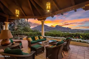 Step into this private retreat, perched on one of the highest lots on Mummy Mountain, and take in breathtaking, bird's-eye views of the valley. This stunning estate offers ultimate privacy, enhanced by meticulously curated landscaping that creates a true oasis. Enjoy uninterrupted, panoramic vistas of Camelback Mountain, stretching all the way to the twinkling city lights of Downtown Phoenix. Start your morning with coffee on one of four patios, and end the day by one of four fireplaces, admiring the spectacular Paradise Valley sunsets. The home's thoughtful layout includes five ensuite bedrooms and a split floor plan, with the primary suite extending the full length of the home. Whether you envision modern elegance or wish to preserve its timeless charm, this home is the perfect canvas to create the sanctuary of your dreams.