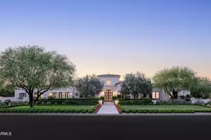 Welcoming Paradise Valley's timeless and elegant privately gated property situated on 1.1 acres of lush, mature landscaping with unobstructed mountain views in the heart of Equestrian Trails. This stunning 9,347 square foot Santa Barbara style home exudes charm, character, and meticulous craftsmanship throughout. Designed by renowned architect Matthew Thomas, built by Mike Foster Custom Homes, distinctive garden design executed by Berghoff Design Group, and lighting package by Walter Spitz, Creative Designs in Lighting - this home is sure to impress, offering unparalleled living in one of Paradise Valley's most desirable areas. Step through the grand entryway where every architectural detail was carefully crafted, overlooking the salt water pool and well manicured and maintained grounds. The soaring ceilings, handcrafted details, and expansive living spaces create an inviting yet opulent atmosphere. The thoughtfully designed floor plan features 6 spacious bedrooms, each a private retreat, and 7.5 beautifully appointed bathrooms. Making your way to the heart of the home, you are greeted with unobstructed Mummy Mountain views from the formal dining room and front patio - perfect for entertaining. The kitchen is overlooking the lush courtyard, complete with top-tier appliances, custom Desert Cove cabinetry, matte Carrera marble counters, and a large solid walnut island in the center that flows effortlessly into the open-concept great room to the north, perfect for entertaining. A beautiful custom chandelier hangs from the cupola above the island, bringing natural light and reflection into the space. Off the great room, you experience true indoor-outdoor living, including accordion doors opening up to a serene courtyard, covered patio, private garden and meticulously landscaped grounds that evoke the charm of a Mediterranean villa. Past the great room, the west wing includes a luxurious primary suite with a spa-inspired ensuite, a dedicated home gym, and two private courtyards. In the east wing, the home features three more en suite bedrooms, a playroom with cupola and tongue and groove ceiling with statement chandelier, and custom leather doors leading into a state-of-the-art theater room with ample storage throughout. One of the most exciting and unique aspects of this property is the attached guest house or party barn: an architectural masterpiece including 100+ year old reclaimed wood from a farm in Idaho. This incredible structure brings history, charm, warmth and a uniqueness to the property. The barn features a full size kitchen, ice maker, wine fridge, reverse osmosis system, loft bedroom with a full bath, two half baths downstairs, laundry room with stacked washer and dryer, and a private single-car air conditioned garage which is perfect for caterers prepping food. This barn is the ultimate entertainer's dream, allowing for large gatherings where you can lock the structure off from the rest of the home to maintain privacy. Outside of the accordion style doors, you will find built-in heaters, an outdoor gas firepit, and market lights above the patio for a true indoor outdoor lifestyle. A separate side entrance allows your guests to enter this unbelievable structure, without entering your main home ensuring complete privacy. Situated in one of Arizona's most prestigious communities, this architectural work of art offers privacy, tranquility, and proximity to world-class dining, shopping, and outdoor recreation. A true testament to design and craftsmanship, this estate is an extraordinary opportunity to own a one-of-a-kind residence that exudes luxury, sophistication and warmth, offering an unparalleled living experience in one of Paradise Valley's most desirable areas.