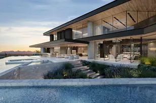 Set high on the prestigious north side of Camelback Mountain, this newly constructed architectural estate captures some of the most breathtaking views in all of Paradise Valley. Positioned on an elevated 1.8 acre homesite, the property overlooks sweeping vistas of the McDowell Mountains, Pinnacle Peak, and the sparkling city lights stretching across the Valley. Designed by renowned architect Stratton Andrews with interiors by acclaimed designer Holly Wright, the residence blends modern desert architecture with warm, refined finishes. The home is thoughtfully designed to frame the surrounding landscape through walls of glass and expansive outdoor living spaces. Spanning approximately 9,000 square feet of livable space with additional lower-level flex areas, the floor plan offers an exceptional balance of grand entertaining and private retreat. The main living areas feature dramatic ceiling heights, a stunning great room, formal dining, a chef's kitchen with secondary prep spaces, wine storage, and seamless indoor-outdoor flow to the resort style pool and spa overlooking the valley below. The lower level is designed for lifestyle and entertainment, featuring a private gallery space, golf simulator, gym, lounge areas, and additional storage. Upstairs guest suites are positioned to capture mountain views while maintaining privacy for both owners and guests. Outdoor amenities include expansive terraces, fire features, multiple entertaining areas, and an infinity-edge pool that visually connects the home to the surrounding desert landscape. A spacious four-car garage, elevator, and thoughtfully integrated smart home features complete the residence. This is a rare opportunity to own a newly built architectural showpiece on one of the most iconic view lots on Camelback Mountain.