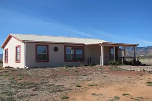 Exceptional mountain views from this modular 2BR/2Ba home. Covered and fenced front patio with panoramic views. Open floor plan and split bedroom plan; high ceilings throughout; lots of natural light. Office could be used as 3rd bedroom. Ample closet space in BRs and office. Step-in shower in MBa. Safes located throughout the house. Breakfast bar in kitchen plus dining area. Window over kitchen sink looking into back of property. Laundry room with storage & place to hang clothes. Just outside laundry room is workshop with solar charging station for batteries. Sliding glass door in kitchen opens into AZ room with plenty of windows for solar gain in the winter. Two carports behind house along with a riding mower/tool shed and a metal shed. This shed has a solar charging station for power tools. Property is fully fenced with no-climb fence. Water provided by local water company. Less than 1/2 mile off paved road with easy access to Hwy 191 and I-10.