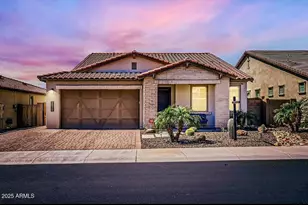 Welcome Home! Nestled against the breathtaking Golden Mountain Preserves, this stunning home is part of a beautifully designed community in North Peoria. Originally built as a showcase spec home by Shea Homes, no expense was spared in its chic upgrades and thoughtful design. From the moment you arrive, you'll be captivated by the professionally landscaped front yard and grand entry hallway. This spacious home features 4 bedrooms and 3 bathrooms in a well-planned split floorplan, offering both functionality and privacy. The upgraded gourmet kitchen is a chef's dream, boasting a gas cooktop, quartz countertops, a stylish tile backsplash, a large island with elegant pendant lighting, urban cabinets, and stainless steel appliances. The great room and dining area are bathed in natural light, thanks to expansive windows that frame a picturesque view of the sparkling pool. The split primary suite is a luxurious retreat, featuring an expanded walk-in shower, dual sinks, and a spacious walk-in closet. Step outside to your private oasis, where the covered patio is equipped with recessed lighting, surround sound connections, and pull-down sunshades. The self-cleaning pool, built in 2020, features a baja shelf and a pristine pebble tec finish. Additional impressive upgrades include: Water softener, Tankless water heater, Backyard storage shed, Katch-a-Kid pool safety feature, Lush turf in the backyard. Beyond your home, enjoy easy access to golf courses, hiking trails, boutique shopping, and top-rated restaurants. Aloravita also offers neighborhood parks, sport courts, ramadas, picnic areas, playgrounds, and gardens. Don't miss this incredible opportunity to own a designer-inspired home in one of North Peoria's most sought-after communities!