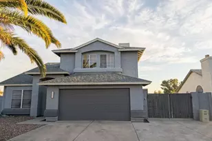Introducing an exquisite two-story home in Peoria! This contemporary marvel boasts soaring ceilings and elegant grey tile flooring throughout. The inviting great room features a cozy fireplace, perfect for cool evenings. The updated kitchen is a chef's dream with a center island, granite countertops, custom cabinets, and sleek black appliances. The master suite is a sanctuary with plush carpeting, a ceiling fan, bay window, and a spacious walk-in closet. Step through the French doors to discover the backyard paradise, complete with a covered patio, sparkling pool with fence, artificial grass, built-in BBQ, and firepit. With its convenient location near the school, this home is sure to capture your heart!