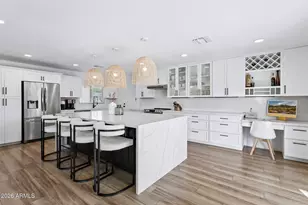 Beautifully reimagined in the heart of North Central Phoenix, this elegant home delivers approachable luxury with a refined, turnkey finish. This single-level residence features an open-concept layout with wood-look flooring, designer lighting & a contemporary kitchen anchored by an oversized island with quartz waterfall counters. Three spacious bedrooms and two updated baths offer well appointed living space, while the seamless indoor-outdoor flow leads to a resort-style backyard with a sparkling pool & built-in outdoor kitchen. Situated on an oversized corner lot with RV gate, extended parking & no HOA, this property offers flexibility & elevated everyday living in the desirable Royal Palm corridor.