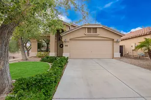Rare single-level, 4-bedroom home in Desert Peak with sparkling play pool and exceptional privacy-only one neighbor! Step inside to soaring ceilings in the formal living and dining area, flowing seamlessly into a spacious family room and open kitchen. The eat-in kitchen boasts granite counters, stainless steel appliances, upgraded cabinets, breakfast bar, built-in desk, and large walk-in pantry. Relax in the expansive primary suite featuring a walk-in closet and scenic backyard views, with a bright primary bath offering double sinks, separate shower, and garden tub. Enjoy stunning Arizona sunsets from your covered patio or pool deck. Meticulously maintained home, lightly lived-in with new HVAC in 2024. Welcome home!