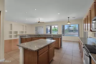 Beautifully upgraded home in the desirable Stetson Hills community of North Phoenix. Situated on a lot backing to a natural wash, this property offers added privacy and scenic desert views. The open layout is filled with natural light and features granite countertops, wood cabinets, and newer appliances. The spacious primary suite includes a sitting area, a well-appointed bathroom with dual vanities and ample counter space, and a walk-in closet. The home offers four bedrooms, including an additional en suite, plus abundant storage throughout. Enjoy a private backyard with a sparkling pool, travertine pavers, low-maintenance desert landscaping, and mature citrus trees. An extended 3-car garage adds convenience. Located near top-rated schools, parks, hiking, and dining.