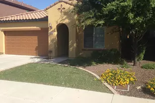 Beautiful rare find, former model home available for the fussiest renters. It has all the beautiful finishes you would expect. Granite counter tops, dual oven, glass tiled back splash in kitchen & stainless steel appliances. Washer/dryer. Double door frig with in-door ice/water. Lots of upgraded staggered tile, wood flooring in a secondary bedroom that would make a perfect exercise room. Beautiful master bedroom has 2 closets, tiled vanity, mirror surrounds & over size shower. Great room & master have surround sound audio. The home has the smart box & alarm in place & wooden shutters in all windows. The extra items continue outside as well with a fire-pit sitting area, paver patio, artificial grass front & back for low maintenance. Located near major shopping/restaurants & GCC North