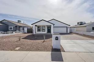Brand new 2025 construction offering 2,210 sqft, 4 beds/3 bath, 2 car garage, no HOA. Beautiful modern home with neutral palette, open concept, natural light, featuring a expansive great room open to the kitchen, stunning cream cabinets, quartz counters, stainless steel appliances, spacious pantry, and island with bar seating! Luxurious master bedroom has a huge walk-in closet, double sink and walk-in shower with tile to the ceiling. Outdoors, the large lot ready for parties to enjoy the AZ lifestyle with plenty of room to play & gather. RV gate, front & back covered patio spaces conveniently located near airport, ASU, Downtown Phoenix, Tempe, & I-10.