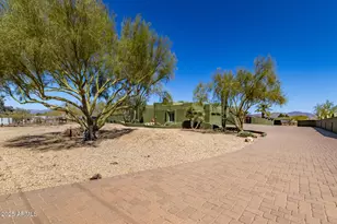 Come home to your private Villa ! This house should not be missed. Serene and Relaxing setting with view of the Table Mesa Mountains, Lounge by the private area pool/patio or sit by the fire-pit. Pool is Black bottom pebble tec with Jacuzzi. Rock waterfall and palm trees adds a vacation vibe. Love horses? Four-pen corral plus tack room will fit the bill. Custom designed paved driveway has room for guests and /or RV parking. Custom metal front door into foyer that leads your eyes to the beautiful mesa view. 12 ' ceilings in living area, oversized baseboards. Fireplace offers a unique focal point. Kitchen is spacious with abundant storage. Primary bedroom is comfortably sized with adjoining remolded elegant bathroom. Oversized primary closet is made to fit most people's needs. Two secondary bedrooms are separated from the primary bedroom for privacy. Hall bathroom and powder room are equally designed to impress. New wood floors, designer curtains in the primary bedroom, recently painted, newer HVAC/FAU/ condenser, (2024) Newer water heater(2022), roof and parapets resurfaced (2024), Pool heater replaced (2024), New stove/oven (2025), Newer dishwasher (2022) New epoxy floor in garage (2025) ***** The fourth bedroom has been used as a closet.